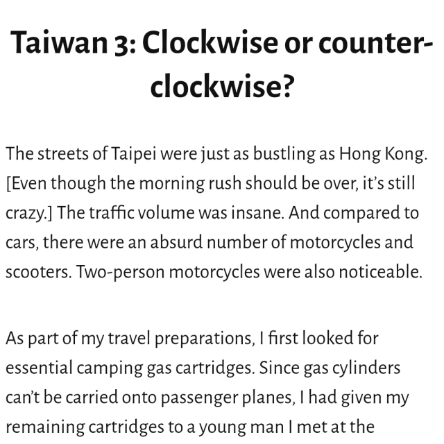 42,000km by bike: U.S./Canada/European & North African countries/Hong Kong/Taiwan in 1982-83; Japan in 1989